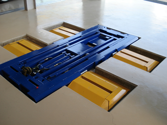 大型ダウンドラフト塗装ブースです。 大型ファンを使い、3層のフィルターを通ったエアは上から降りてきて、同じ大型ファンで地下に掘ったダクトからフィルターを通り循環しています。 国内の安全基準を楽々とクリアするこの循環システムは、安全面だけでなく塗装の際に、お客様のお車に出来るだけホコリが付着しないように設計されています。 この他に、もう一台の最新型のカーテン塗装ブースがあります。同時に2台の車両を塗装する事で、コストダウンを計り少しでも安く、綺麗なお車を渡せるようにしています。 |